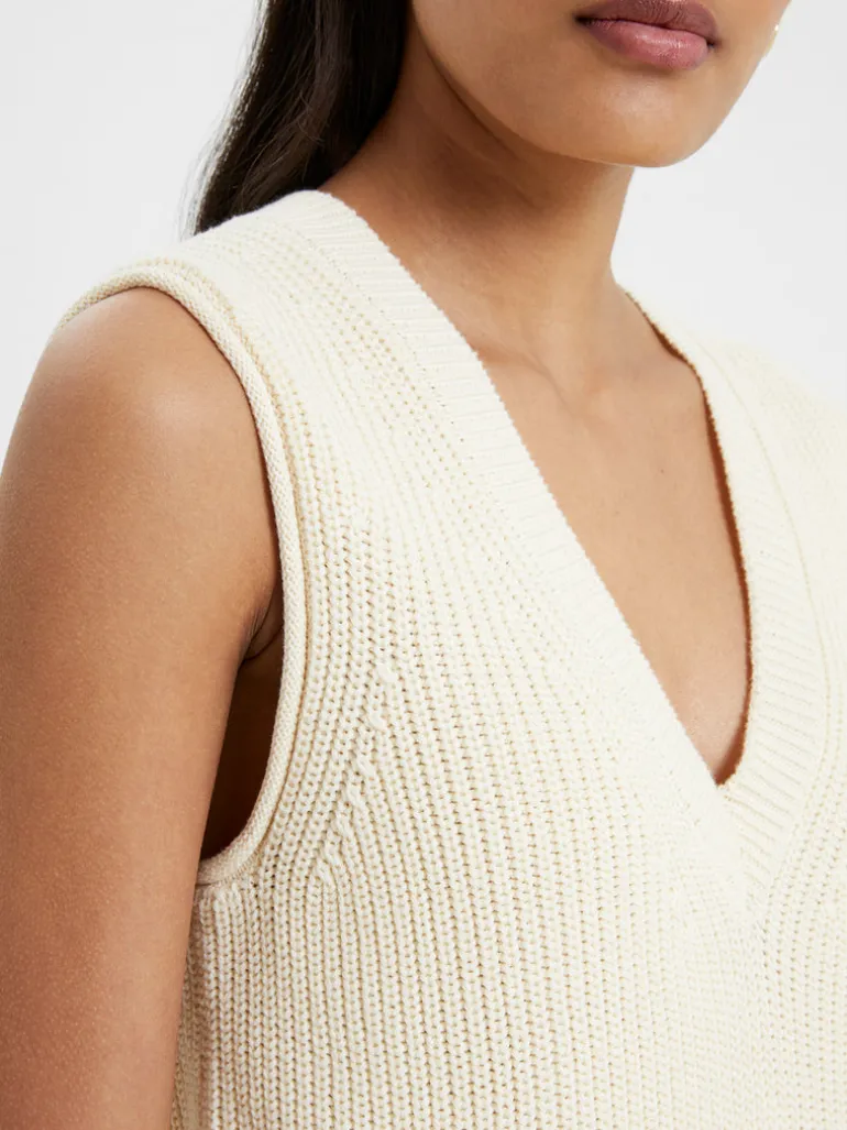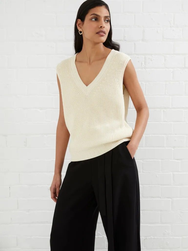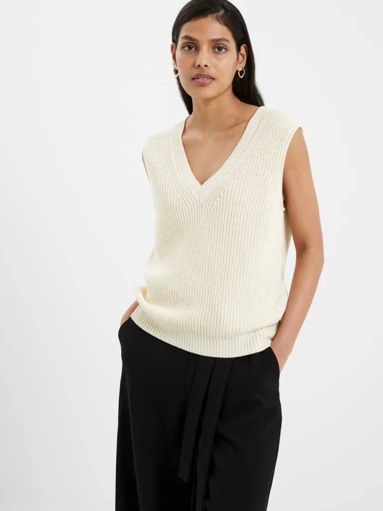 We love a versatile style and our Lily Mozart Knit Vest is a prime piece. This knitted number flaunts a sleeveless and v-necklined silhouette, ideal for wearing solo or layering up for effortlessly chic ensembles.VestFabric: pure cotton,soft knit, creamSleevelessV-necklineRibbed hemRegular fitSize S length is 59.5cmOur model is 5ft10″ and wearing a Size SStyle code – 78VAM
