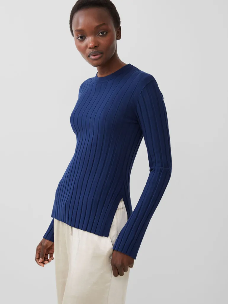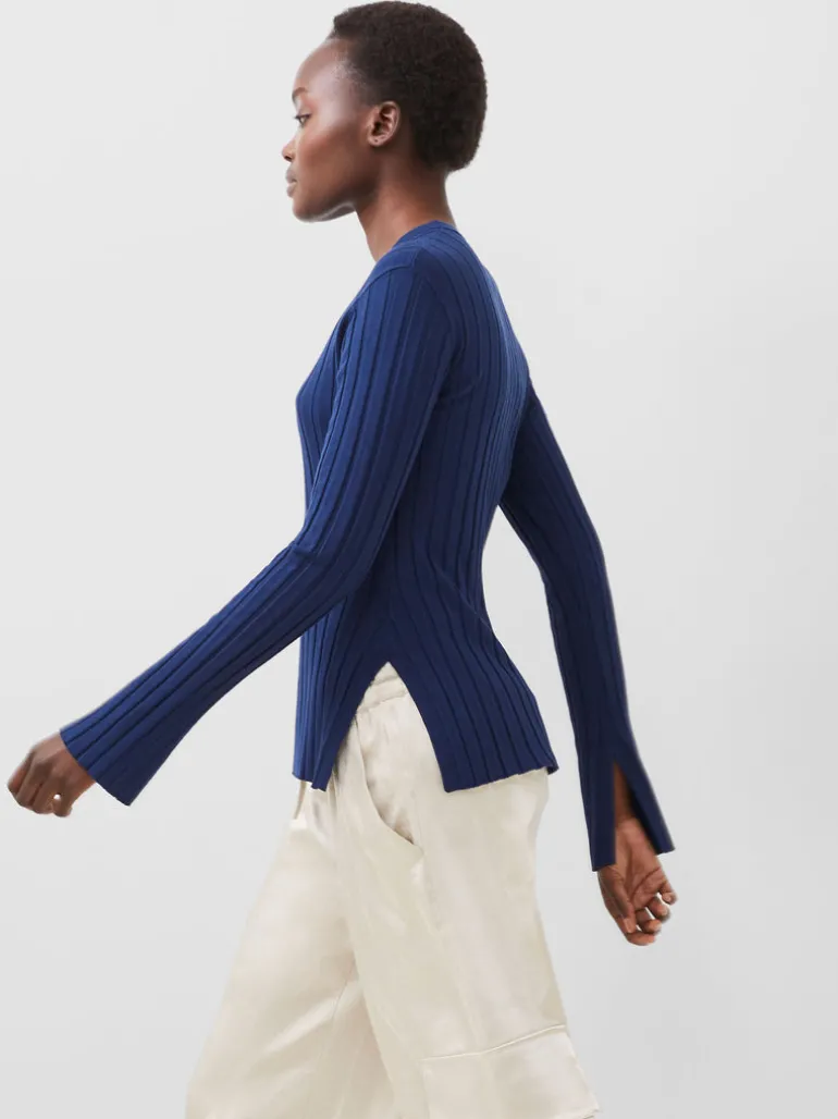 Our Minar Eco Pleated Sweater is a bright essential for anyone looking to stay chic and comfortable for seasons to come. This versatile sweater offers elegant pleats upon a long sleeved silhouette with a classic round neckline, ready to uplift your every day to night ensembles.We have chosen to use a viscose yarn from LENZING™ called ECOVERO™ . The sustainable viscose fibres are produced using wood pulp, derived from responsibly managed forests.SweaterFabric: eco, soft, pleated, blueLong sleevesRound neckline2 side splitsSize S length is 61cmOur model is 5ft10″ and wearing a Size SStyle code – 78WAB